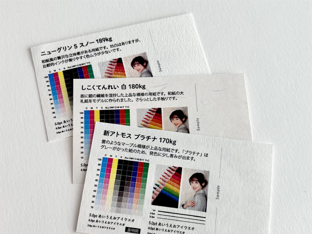 最高級の手漉き越前和紙を選ぶにしても、和紙風用紙を選ぶにしても、実際に紙のサンプルを手に取ってみないことには、なかなか紙の質感や風合いの違いは分かりません。