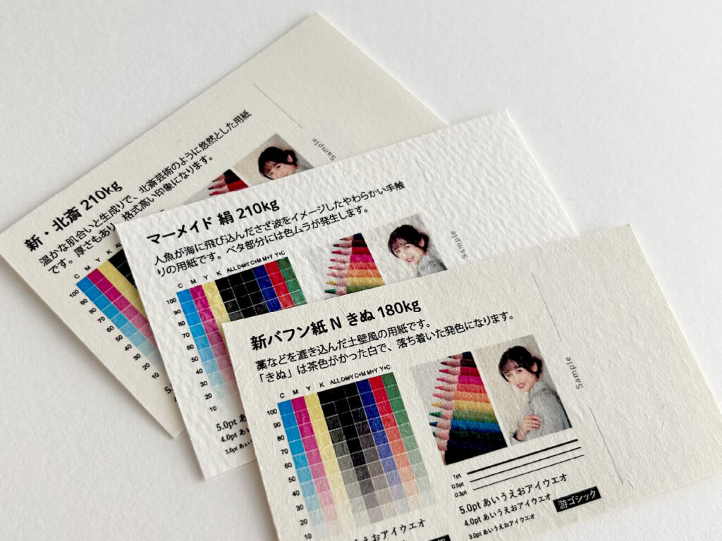 最近ではデザインテンプレートの選択から、掲載情報の入力、フォントや色選び、印刷用紙の選択まで、名刺作成の工程の全てをインターネット上で完結できる名刺作成会社が増えてきています。しかし、和紙特有の手触りや風合いは、実際に手に持ってみないことにはなかなか分からないものです。