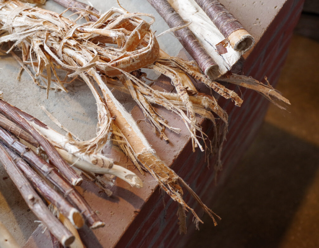 西洋紙の主な原材料は木材や草などの植物から抽出された木材パルプと呼ばれる繊維です。一方、和紙は楮(コウゾ)・三椏(ミツマタ)・雁皮(ガンピ)といった植物の繊維が原材料として使われています。西洋紙の質感が均一で滑らかなのに対し、和紙は長い植物繊維が透け、表面に自然な凹凸感があります。手に触れるとツルツルとした面とザラザラした面があり、指先に心地よい刺激を与えます。植物由来の繊維が持つ温かみや優しい手触りがあり、手にした人の心に響きます。